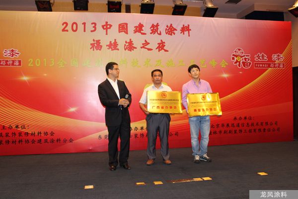 2014.12年會(huì)上中國(guó)建筑裝飾裝修協(xié)會(huì)建筑涂料分會(huì)給龍風(fēng)涂料公司